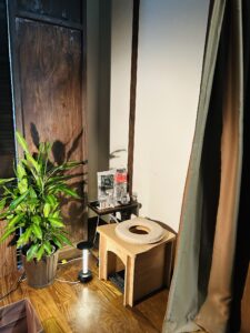 椅子の安定感: 熊本県天草産ヒノキを使用したオリジナルチェアは、座面が広く安定感があります 。従来のよもぎ蒸し椅子で感じていた「倒れるかもしれない」という不安がなく、リラックスして座り続けられます。