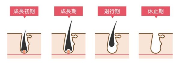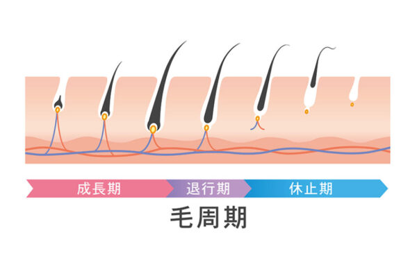 毛には成長期・退行期・休止期というサイクルがあり、この周期に合わせて施術を行うことで効率よく脱毛効果を得られます。